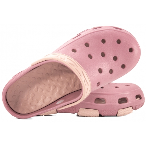 Model F-402 to praktyczne chodaki z tworzywa EVA, które sprawdzą się zarówno w domu, ogrodzie, jak i na plaży czy basenie. Ich lekka konstrukcja, odporność na wilgoć oraz łatwość czyszczenia czynią je doskonałym wyborem na cieplejsze dni. Różowa kolorystyka dodaje im świeżości i kobiecego charakteru.