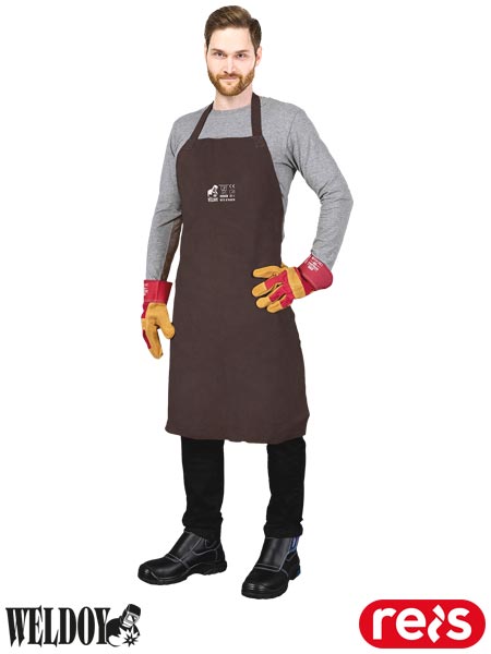 fartuch spawalniczy, fartuch ochronny, skórzany fartuch, odzież ochronna spawalnicza, fartuch do spawania, odzież odporną na gorąco.