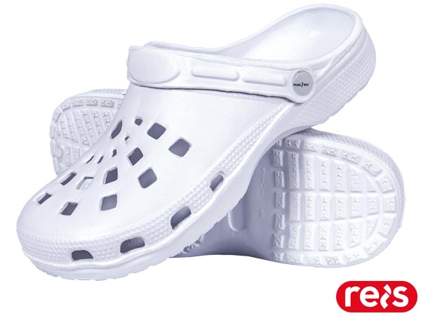 klapki REIS, BCDOTS, klapki białe, obuwie robocze, klapki medyczne, buty na rzep, obuwie na basen, wygodne klapki, klapki dla personelu, klapki do pracy