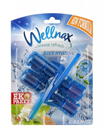 Kostka do WC Wellnax Orange to skuteczny środek czyszcząco-zapachowy przeznaczony do utrzymania świeżości i higieny w toalecie. Produkt w formie zawieszki do muszli klozetowej stopniowo uwalnia aktywne składniki podczas każdego spłukiwania, zapewniając czystość oraz przyjemny cytrusowy zapach.