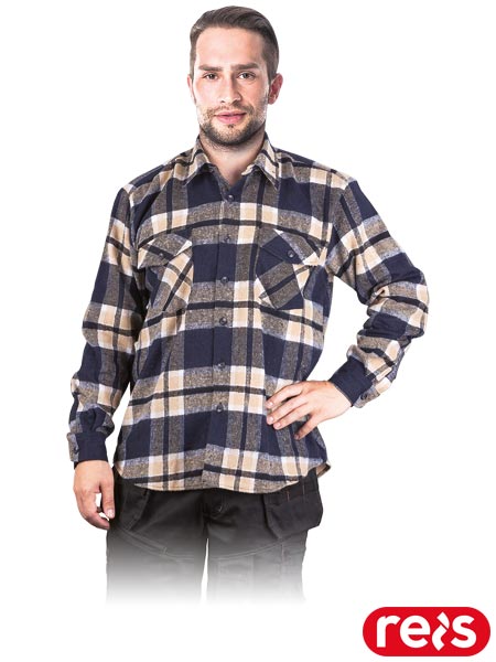 Słowa kluczowe: koszula flanelowa, koszula robocza niebieska, koszula REIS KFLUXN, odzież robocza, koszula w kratę, flanela robocza, koszula męska robocza