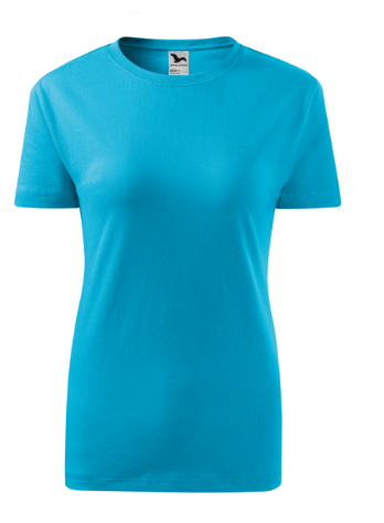 koszulka damska turkusowa, t-shirt classic new 133, koszulka bawełniana damska, odzież firmowa, koszulka na co dzień, koszulka do nadruku, klasyczna koszulka damska, t-shirt do pracy, koszulka reklamowa turkus