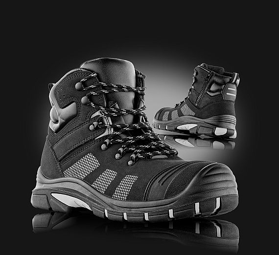 Wyposażone w kompozytowy podnosek oraz wkładkę antyprzebiciową, skutecznie chronią stopę przed urazami. Antypoślizgowa podeszwa gumowa jest odporna na oleje, smary i krótkotrwały kontakt z gorącym podłożem do 300°C (HRO). Wzmocniona strefa pięty i palców zwiększa trwałość obuwia.