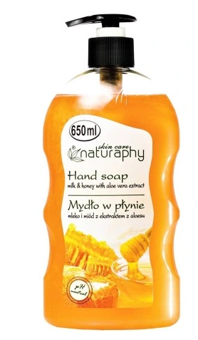 Słowa kluczowe: mydło w płynie, Naturaphy, mleko i miód, nawilżające, do rąk, pielęgnacja skóry, łagodne, 650ml