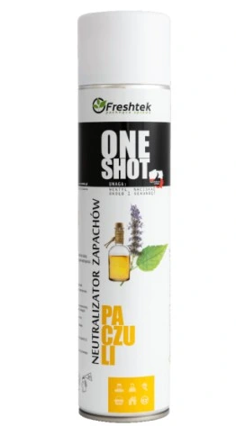 Słowa kluczowe: neutralizator zapachów, Freshtek, One Shot, paczuli, odświeżacz powietrza, ekologiczny, aromat paczuli, neutralizacja zapachów, odświeżacz, spray, 600 ml.