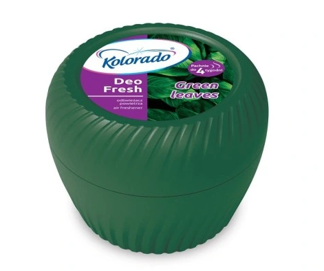 odświeżacz powietrza, Kolorado Deo-Fresh, żelowy odświeżacz, zapach Green Leaves, neutralizator zapachów, świeży zapach, odświeżacz do biura, odświeżacz do łazienki