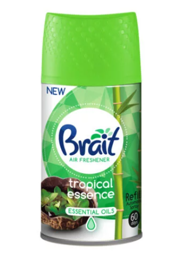 Brait Tropical Essence to odświeżacz powietrza, który wprowadza do pomieszczenia egzotyczną świeżość i przyjemny, tropikalny zapach. Skutecznie neutralizuje nieprzyjemne zapachy, pozostawiając w powietrzu długotrwałą, relaksującą woń.