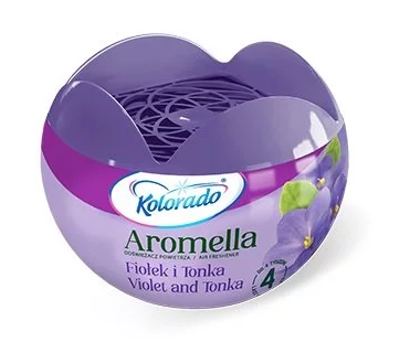 odświeżacz powietrza, żelowy odświeżacz, Kolorado Aromella, fiolet i tonka, zapach do pomieszczeń, neutralizacja zapachów, odświeżacz do domu, odświeżacz do łazienki