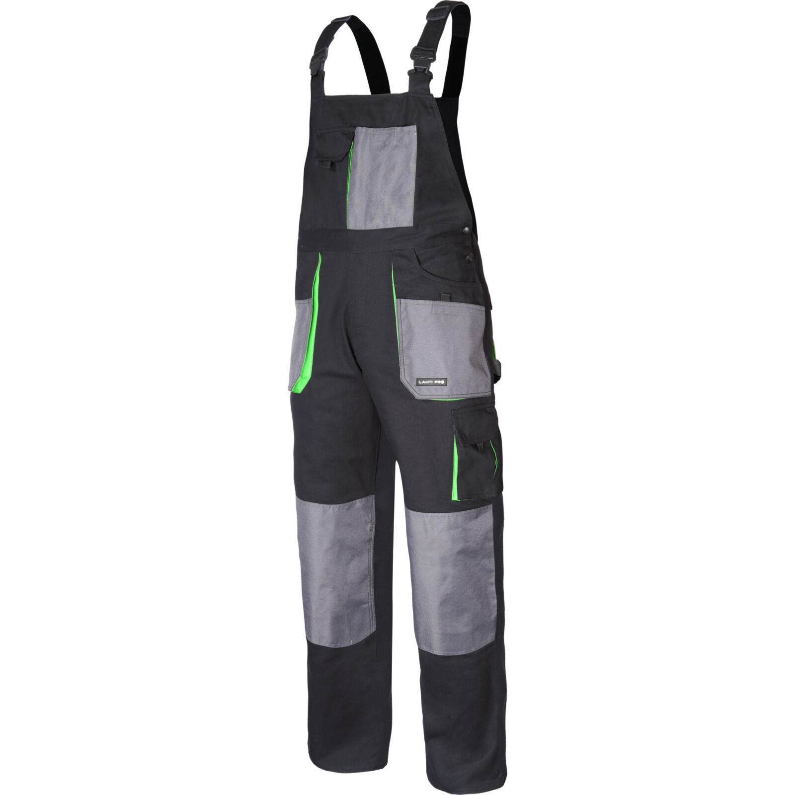 ogrodniczki robocze, LAHTI L4060648, ogrodniczki bawełniane, ogrodniczki czarno-zielone, odzież robocza, ogrodniczki do pracy, ogrodniczki z kieszeniami, odzież BHP, ogrodniczki z regulowanymi szelkami, bawełniane spodnie robocze