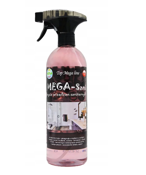 Słowa kluczowe: płyn do mycia łazienki, MEGA-SANI D903, środek do czyszczenia sanitariatów, usuwanie zacieków mydlanych, technologia NANO, płyn do armatury łazienkowej