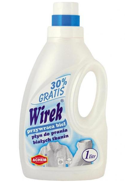płyn do prania, Wirek białe tkaniny, płyn do białego, środek do prania ubrań, płyn do pralki, pranie białych ubrań, chemia gospodarcza, płyn do prania 1L, usuwanie plam, świeżość ubrań
