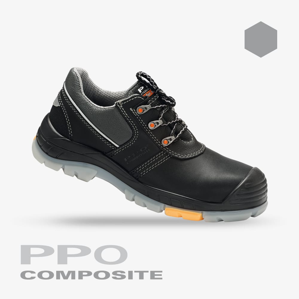 półbuty robocze, obuwie robocze S3, PPO Strzelce Opolskie, skórzane półbuty, podnosek kompozytowy, wkładka antyprzebiciowa, obuwie ochronne, podeszwa PU/PU, obuwie robocze z antyprzebiciową wkładką, obuwie robocze SRC.