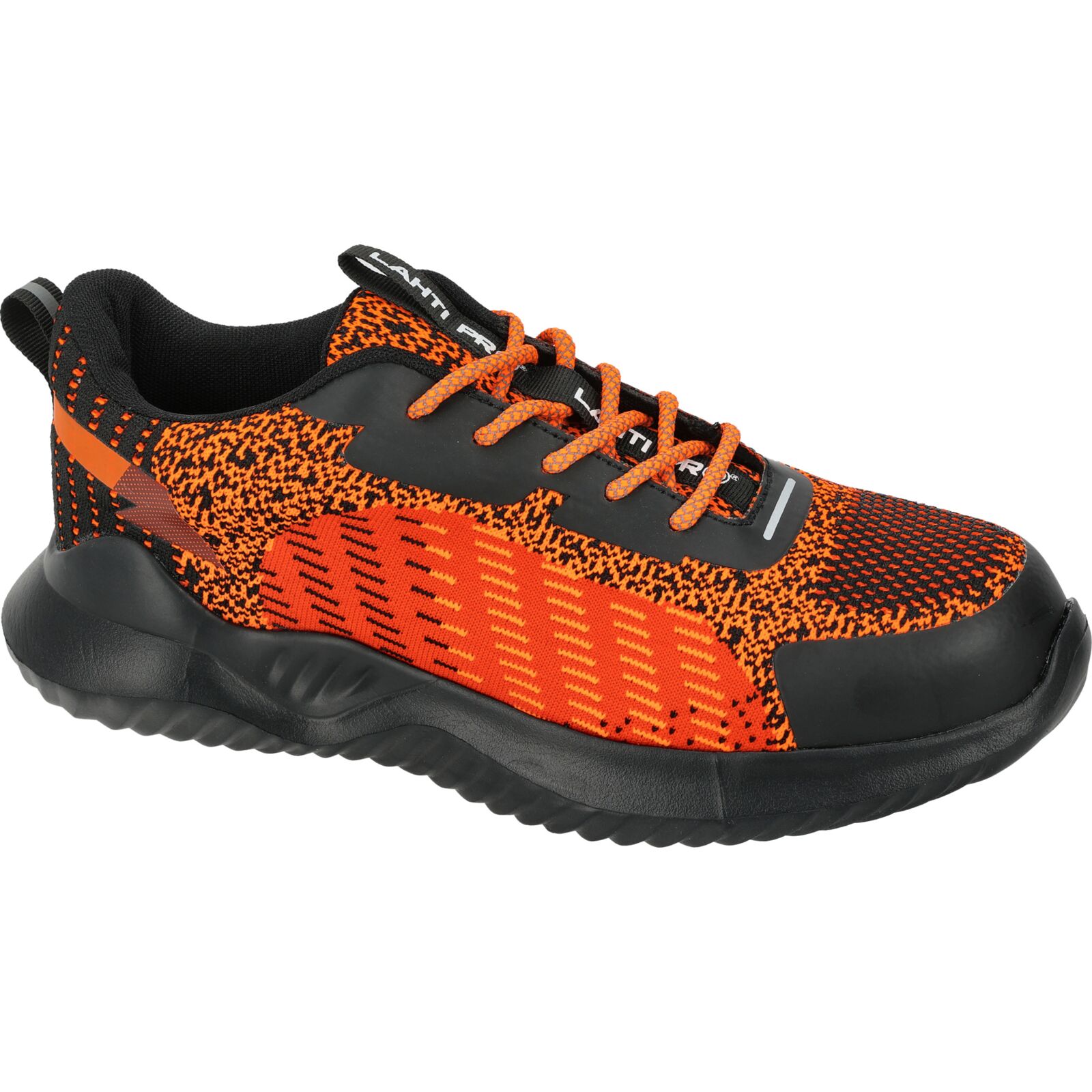 półbuty robocze Lahti, obuwie ochronne SB FO, buty BHP z dzianiny, lekkie buty robocze, stalowy podnosek, pomarańczowo-czarne obuwie ochronne