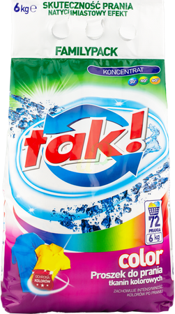 proszek do prania, TAK Color Perfect, pranie kolorów, intensywność barw, świeży zapach, ochrona pralki, usuwanie plam, pranie ręczne, pralka automatyczna, detergent.