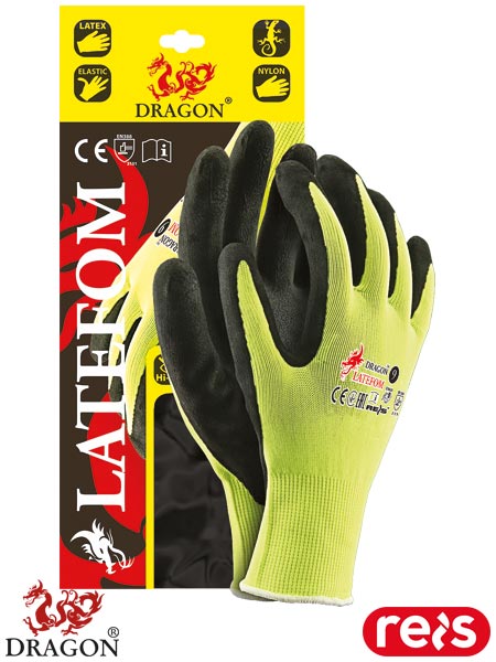 Słowa kluczowe: rękawice robocze lateksowe, rękawice LATEFOM YB, rękawice powlekane lateksem, rękawice ochronne budowlane, rękawice robocze żółto-czarne, rękawice do pracy