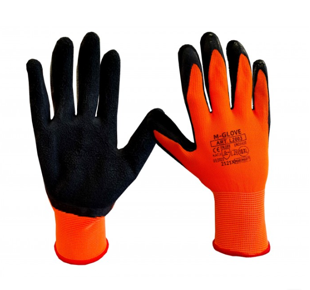 Słowa kluczowe: rękawice robocze lateksowe, M-GLOVE L2003, rękawice powlekane pianką lateksową, ochronne do prac manualnych, rękawice montażowe spieniony lateks