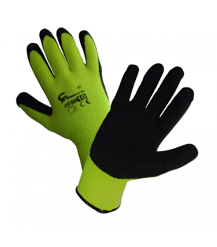 rękawice robocze, rękawice ochronne BOA, SILBET ART 415F, rękawice żółte, rękawice powlekane gumą, rękawice BHP, rękawice do pracy.