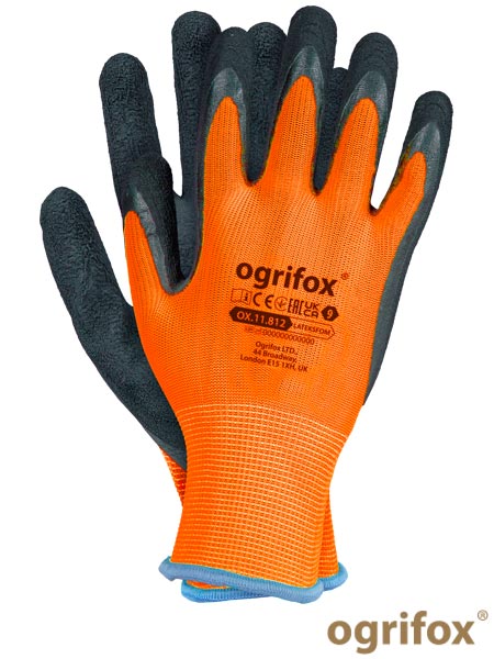 Słowa kluczowe: rękawice robocze lateksowe, rękawice REIS OGRIFOX, OX-LATEKSFOM_PB, rękawice powlekane lateksem, rękawice ochronne pomarańczowe, rękawice BHP REIS