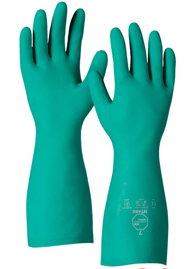 rękawice chemiczne, rękawice nitrylowe, rękawice ochronne, Tychem NT480, rękawice flokowane, rękawice do pracy z chemikaliami, rękawice BHP