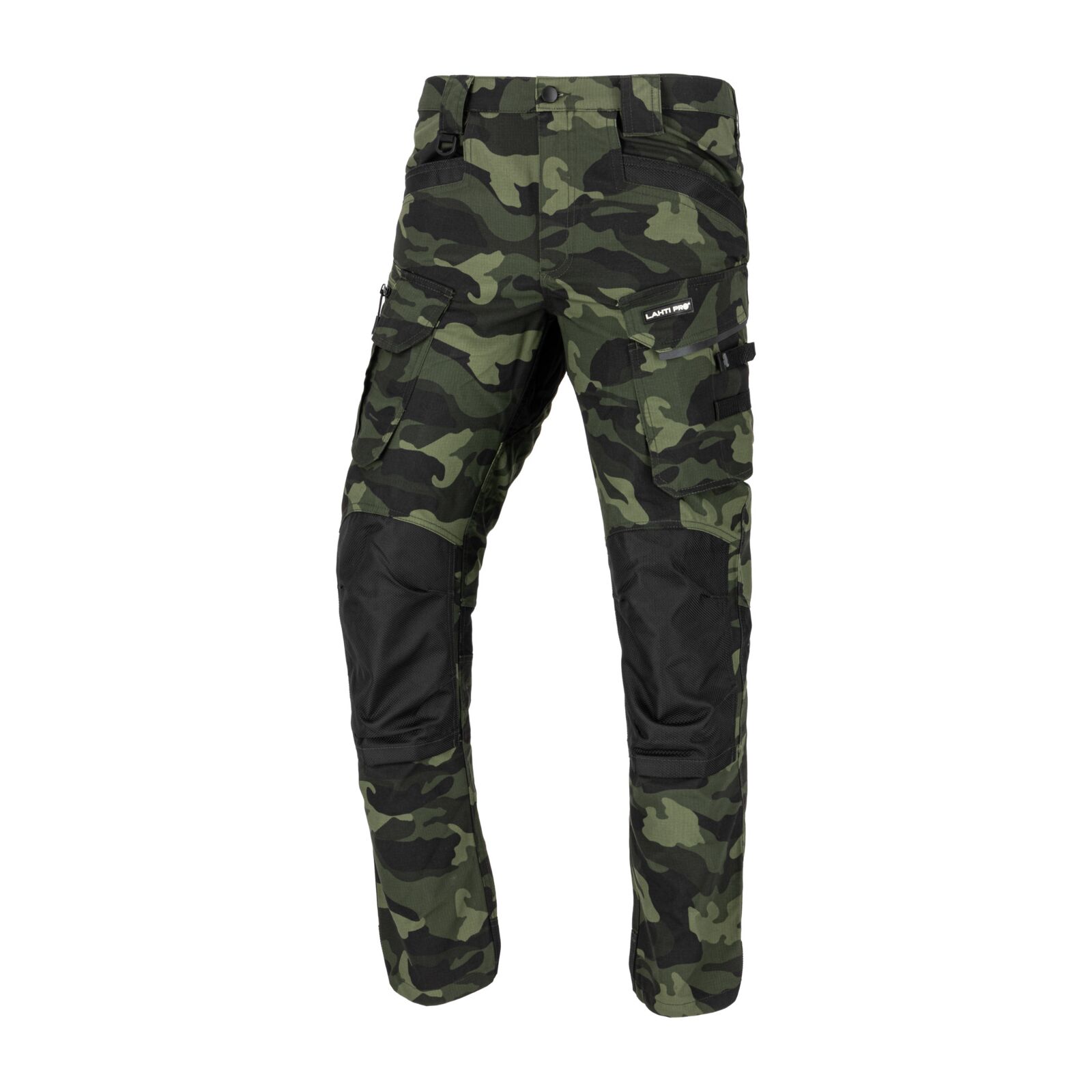 Spodnie bojówki LAHTI L4051901 w zielonym wzorze moro to idealne rozwiązanie dla osób pracujących w trudnych warunkach. Zapewniają wysoki komfort, wytrzymałość i funkcjonalność, dzięki licznym kieszeniom i wzmocnieniom. Sprawdzą się zarówno w pracy, warsztacie, lesie, jak i na co dzień.
