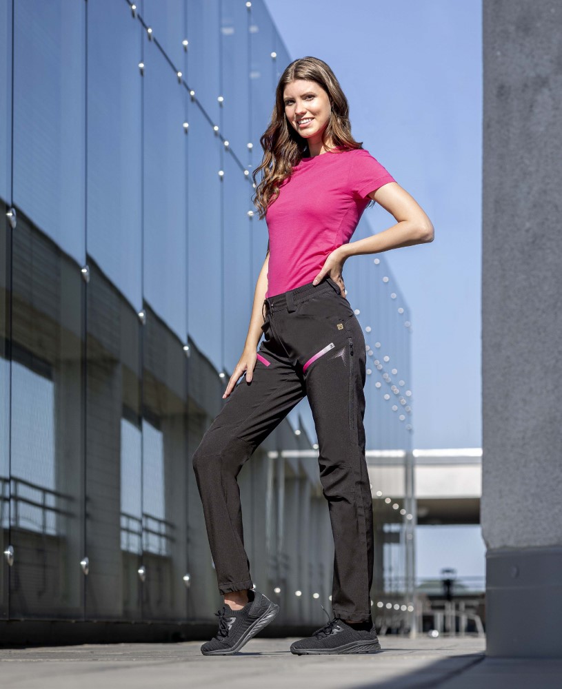 Nowoczesne spodnie robocze dla kobiet wykonane z elastycznego materiału softshell, który zapewnia ochronę przed wiatrem i wilgocią, a jednocześnie gwarantuje swobodę ruchów. Model CREATRON H6673 to połączenie funkcjonalności i sportowego designu – idealny do pracy i aktywności na świeżym powietrzu.