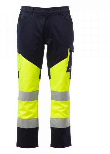 Słowa kluczowe: spodnie robocze fluorescent 01014, spodnie ostrzegawcze granatowo żółte, spodnie robocze hi vis, spodnie odblaskowe do pasa, odzież robocza ostrzegawcza.