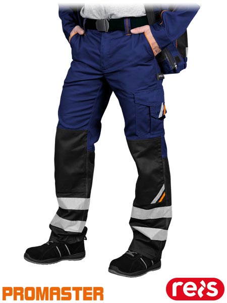 spodnie robocze, REIS PROMASTER, PROM-T_NBP, spodnie do pasa, odzież robocza, spodnie BHP, niebiesko-czarne spodnie, odzież do pracy, spodnie z kieszeniami, spodnie ochronne