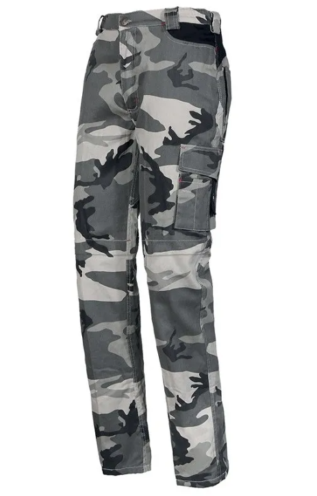 Spodnie robocze ISSA LINE ART.8029NB URBAN WORK w kolorze grey moro to doskonały wybór dla osób pracujących w wymagających warunkach. Wykonane z trwałego i odpornego na przetarcia materiału, gwarantują długotrwałe użytkowanie i komfort noszenia. Nowoczesny kamuflażowy wzór łączy funkcjonalność z estetyką, a ergonomiczny krój zapewnia swobodę ruchów. Liczne kieszenie umożliwiają wygodne przechowywanie narzędzi i akcesoriów potrzebnych podczas pracy.