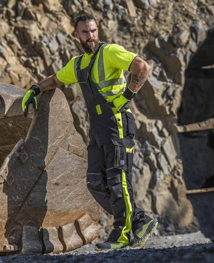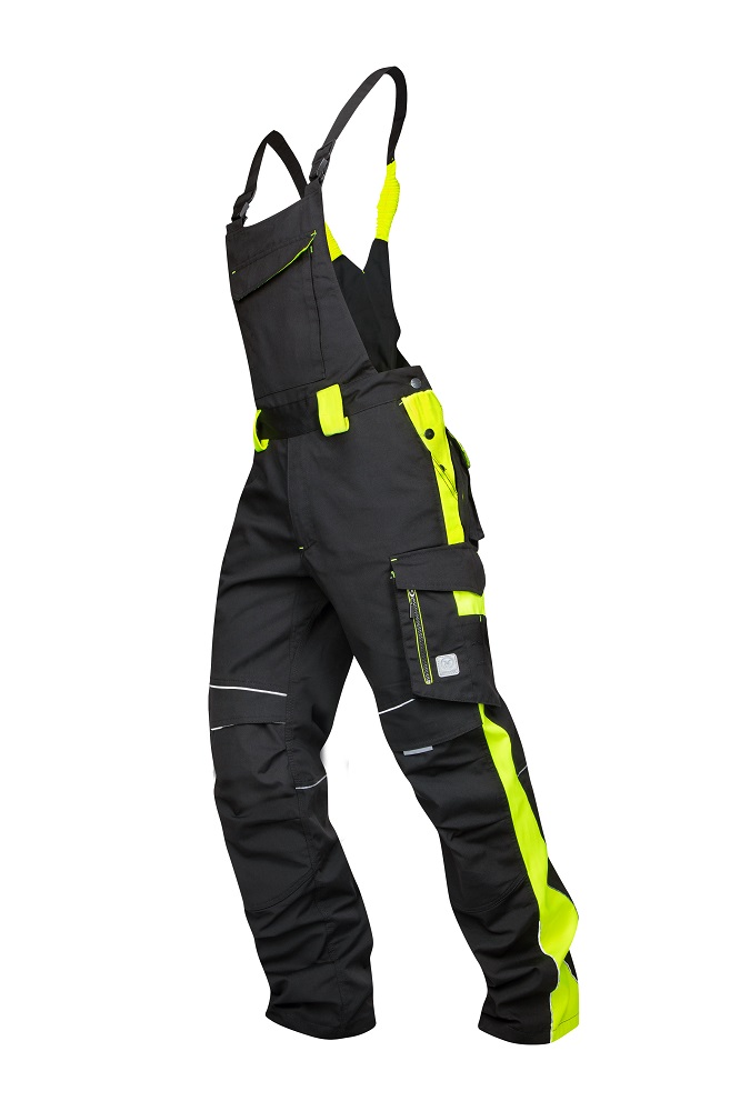 Ogrodniczki robocze Ardon NEON H6435 w kolorze czarno-żółtym to praktyczna odzież robocza wyróżniająca się nowoczesnym wyglądem i funkcjonalnością. Wykonane z wytrzymałej tkaniny, zapewniają trwałość oraz komfort noszenia przez cały dzień. Kontrastowe, żółte wstawki poprawiają widoczność, co zwiększa bezpieczeństwo w miejscu pracy.