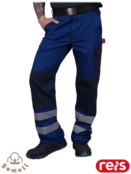 spodnie robocze do pasa, REIS BOMULLX-T_NG, spodnie z pasami odblaskowymi, odzież robocza, spodnie robocze BHP, spodnie do pracy, spodnie z kieszeniami, odzież ochronna, spodnie do pracy na drogach, odzież odblaskowa
