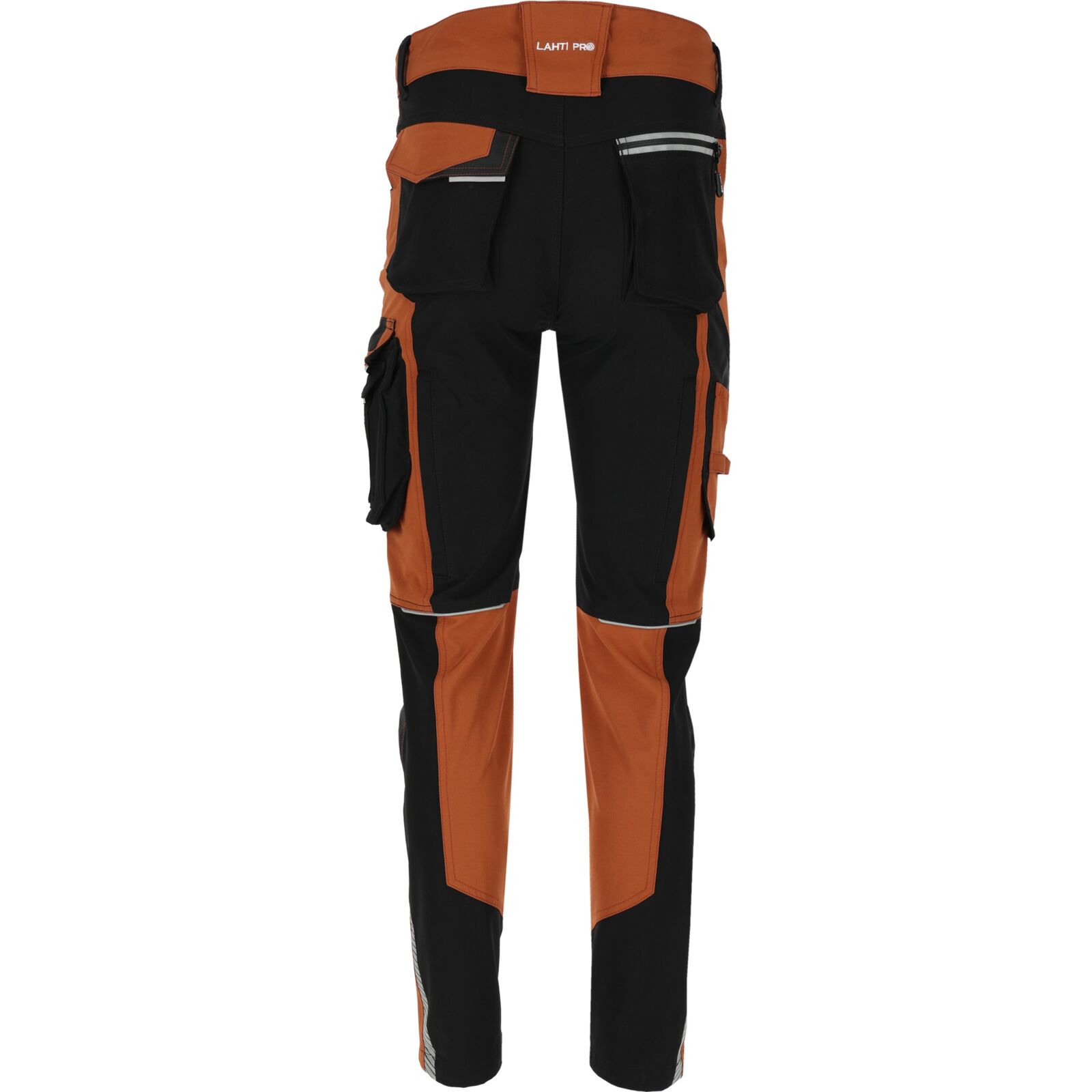 spodnie robocze stretch, Lahti Pro L4054502, spodnie brązowo-czarne, spodnie z Cordurą, odzież robocza elastyczna, spodnie techniczne, spodnie BHP