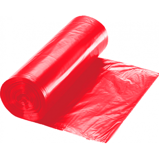 Wytrzymałe, grube, mocne worki na śmieci wykonane z folii LDPE, w kolorze czerwonym, o pojemności 240 litrów.