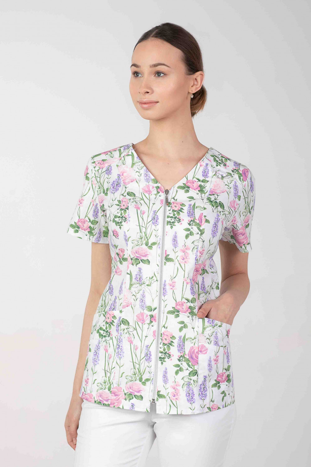Słowa kluczowe SEO: żakiet medyczny damski, żakiet z złotym suwakiem, żakiet medyczny na zamówienie, żakiet z kieszeniami, elegancki żakiet medyczny, medyczna odzież damska, żakiet medyczny z wzorem kwiatowym, taliowany żakiet medyczny.