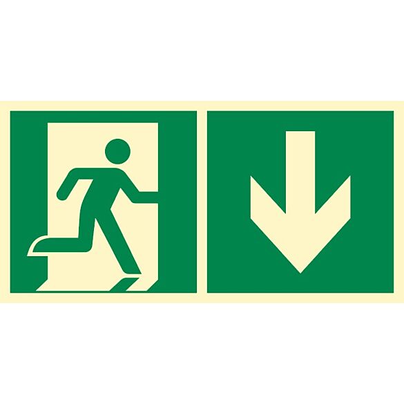 Kierunek: Do wyjścia ewakuacyjnego w dół, prawostronny