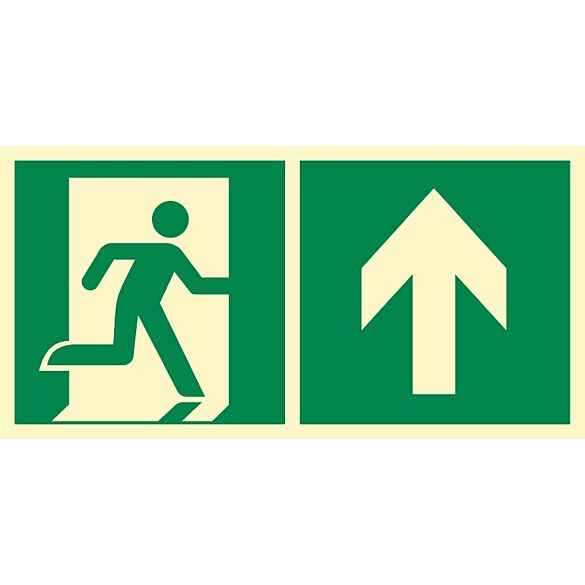 Profesjonalny znak ewakuacyjny wskazujący kierunek do wyjścia awaryjnego – w górę i w lewo. Wykonany z trwałej płyty o wysokiej odporności na uszkodzenia mechaniczne i czynniki atmosferyczne. Idealny do montażu w budynkach użyteczności publicznej, zakładach pracy, szkołach oraz wszędzie tam, gdzie wymagane jest oznakowanie dróg ewakuacyjnych.