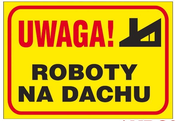 Słowa kluczowe: znak ostrzegawczy, roboty na dachu, BHP, bezpieczeństwo pracy, znak płyta, Z-TB3, oznakowanie budowy